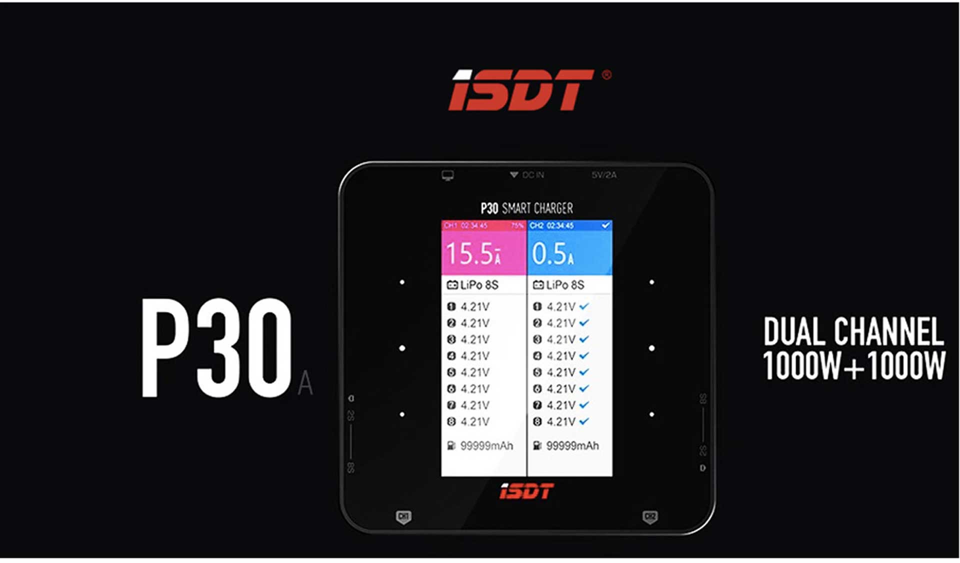 “ISDT P30 DUAL CHANNEL 1000+1000W SMART CHARGE MIT BLUETOOTH ANBINDUNG”