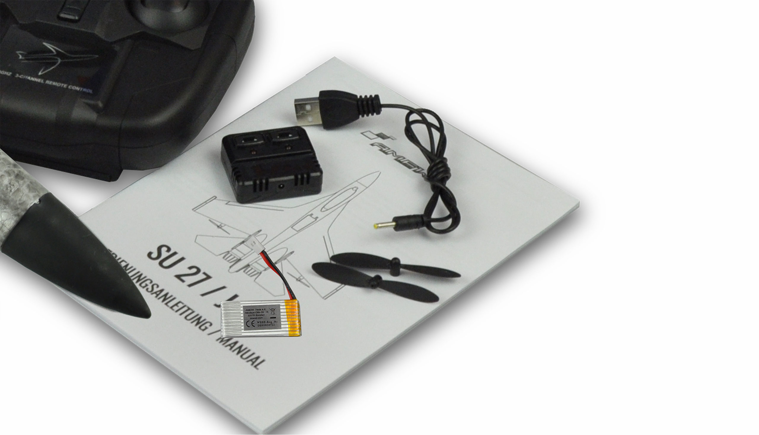 Das Modell überzeugt durch seine Flugleistungen und die vollautomatische Lagestabilisierung (Gyro), welche sehr angenehme Flugeigenschaften verleiht und es voll einsteigertauglich macht. Da der J-11 Nachbau RTF (Ready to Fly) ausgeliefert wird, ist vor dem Start kein Schrauben, Bohren oder Kleben mehr erforderlich. Der eingebaute Gyro übernimmt in der Luft sofort die Flugstabilisierung und der Pilot kann sich auf das eigentliche Steuern des Modells konzentrieren. Sobald keine Steuereingabe mehr gemacht wird, geht das Modell wieder in einen horizontalen Geradeausflug über. Durch eine Taste am Sender kann der Gyro z.B. für Loopings ausgeschaltet werden (stabilisiert max. 15 – 20°, Steigflug möglich). Sollte doch einmal die Fluglage unsicher werden, dient der Gyroschalter als Rettungsanker. So wird direkt nach dem Drücken des Knopfes das Modell wieder automatisch in eine stabile Fluglage gebracht. Das robuste, schlagzähe EPP-Material lässt auch mal härtere Stürze und Landungen zu. Es ist leicht zu reparieren bzw. zu kleben.