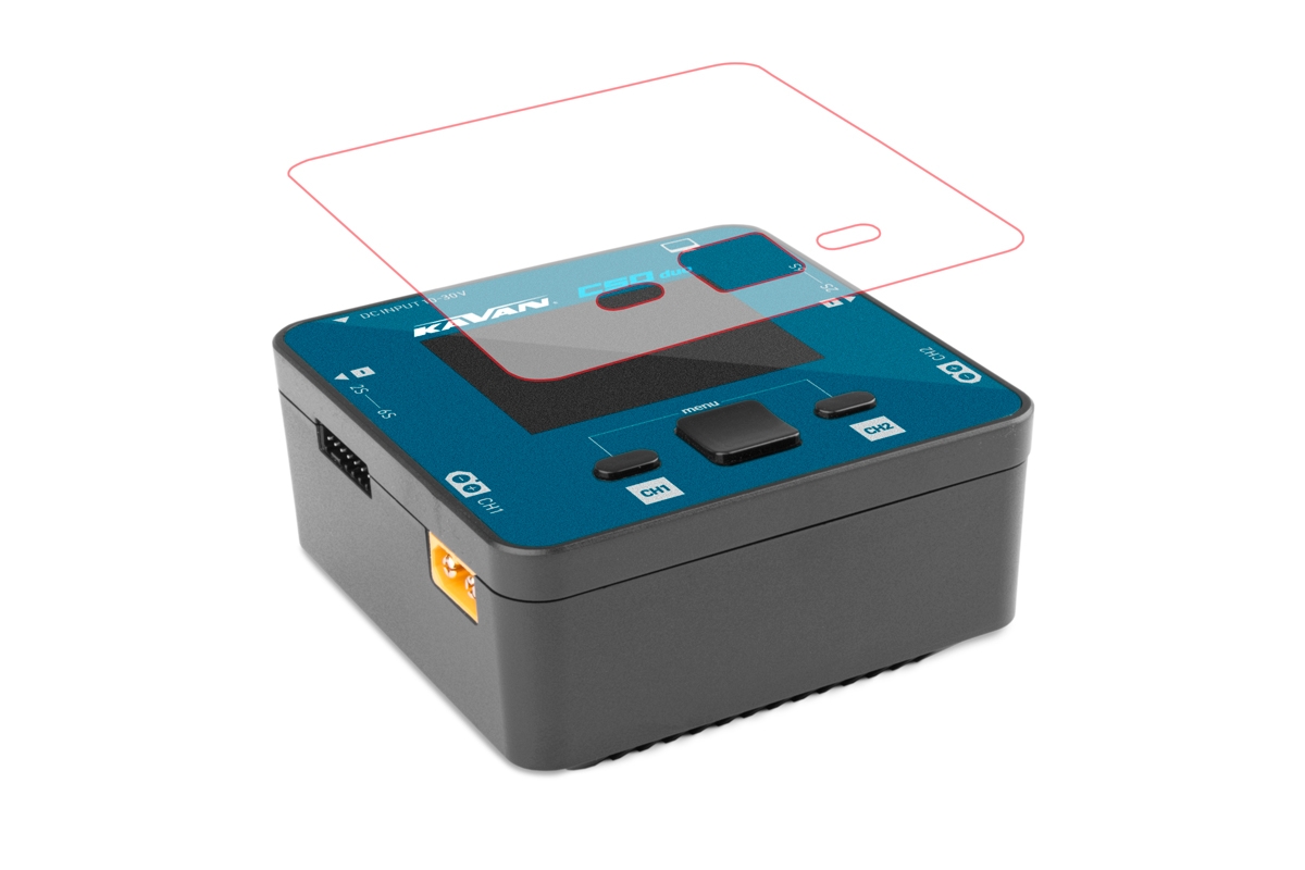 Das KAVAN C50 Duo 2x250W Palm-Size Ladegerät ist ein intelligentes Zweikanal-Ladegerät welches von einer Autobatterie oder einem stabilisiertem Netzteil versorgt wird. Es besitzt eine sehr einfache und intuitive Bedienung. Das C50 Duo kann die folgenden gängigen Zelltypen ( NiCd , NiMH , LiPo , LiHV , ULiHV , Li – Ion , LiFe , Pb ) laden. Ein Plus ist der eingebaute Sechskanal – Balancer, um zu gewährleisten, dass auch Lithium- Akkus sicher geladen werden können. Das Ladegerät ist mit einem Farb – LCD ausgestattet und besitzt Tasten zur Programmierung. Diese ermöglichen ein sehr komfortables und übersichtliches programmieren des Laders und seiner Einstellungen.