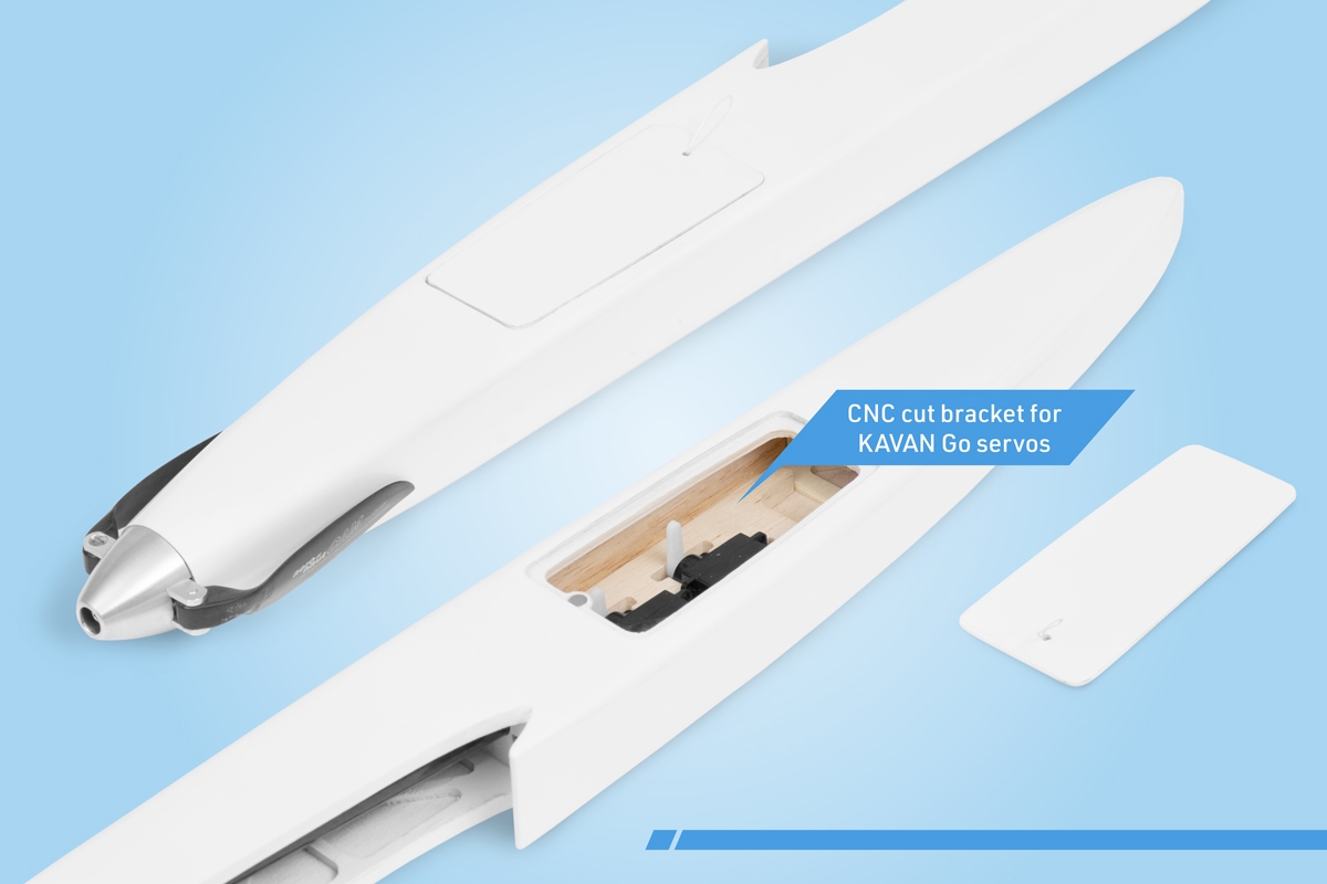 Für den Antrieb der elektrischen Version brauchen Sie einen Brushless-Elektromotor der 150-200 W Klasse (Durchmesser 22 mm), 20A Regler wie KAVAN R-20B und 2S oder 3S LiPo-Akku 450 mAh.