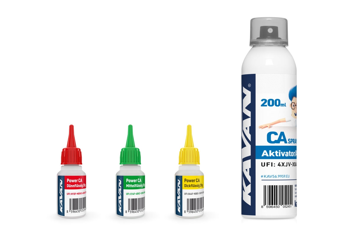 KAVAN CA 3x20g Sekundenkleber Satz (Dünn, Mittel., Dick) inkl. 200ml Aktivator.