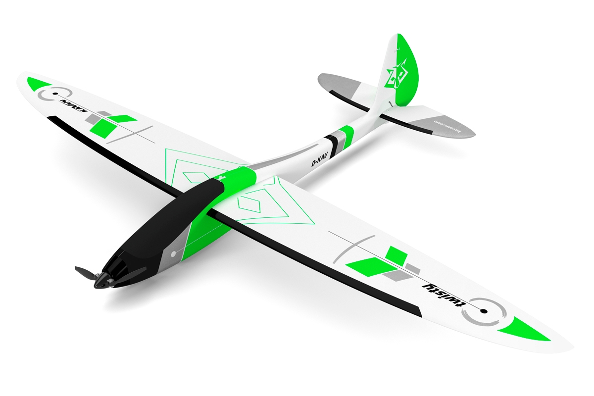 Mit unserem neuen 3D-Kunstflug-Motorsegler TWISTY können Sie auf der Ebene und am Hang viel Spaß haben. Der Segler hat nicht nur große Steuerflächen, wie es bei 3D-Modellen üblich ist. Er hat nicht nur ein schwimmendes Höhenruder, sondern für eine perfekte Manövrierfähigkeit rotiert er sogar auch die ganzen Flügelhälften. TWISTY ist an Berghängen, über Meeresklippen oder Dünen zu Hause, wo er bei starkem, regelmäßigem Wind richtig Gas geben kann. Damit Sie ihn auch dort genießen können, wo die Hügel nicht so hoch sind und der Wind nur schwach weht, haben wir einen leistungsstarken Brushless-Motor mit einer Faltluftschraube eingebaut.