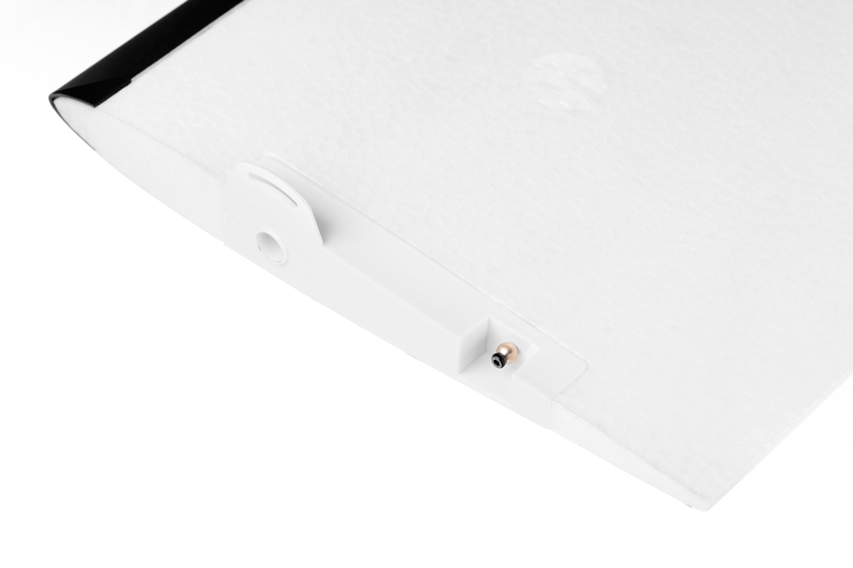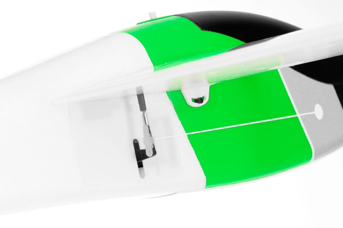 des Modells aus EPO-Schaum besteht aus zwei kohlefaserverstärkten Teilen. Die Flügelhälften werden an den Kohlefaser-Rohrverbinder gesteckt und mit Schrauben befestigt. Sie werden unabhängig von zwei Servos mit kurzen geraden Drahtgestängen gesteuert. Um die Einstellung der Neutrallage zu erleichtern, zeigen dreieckige Markierungen am Rumpf die Mittelstellung der Endleiste an.