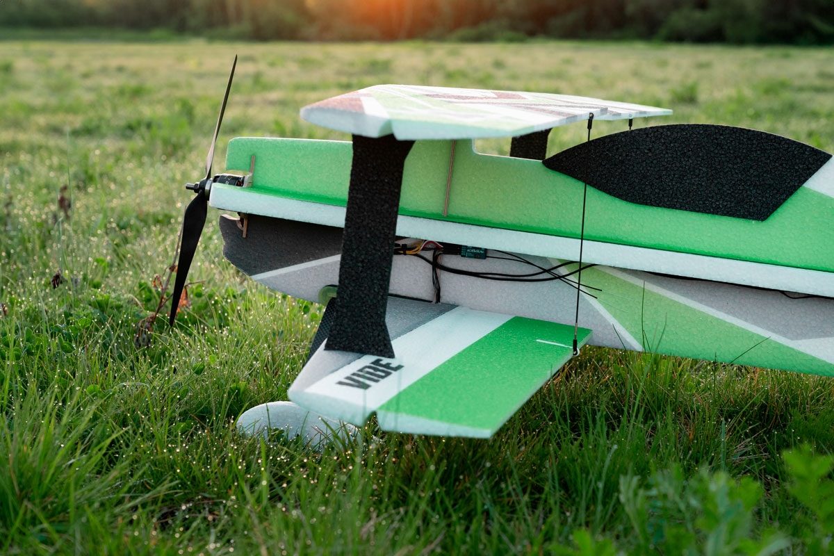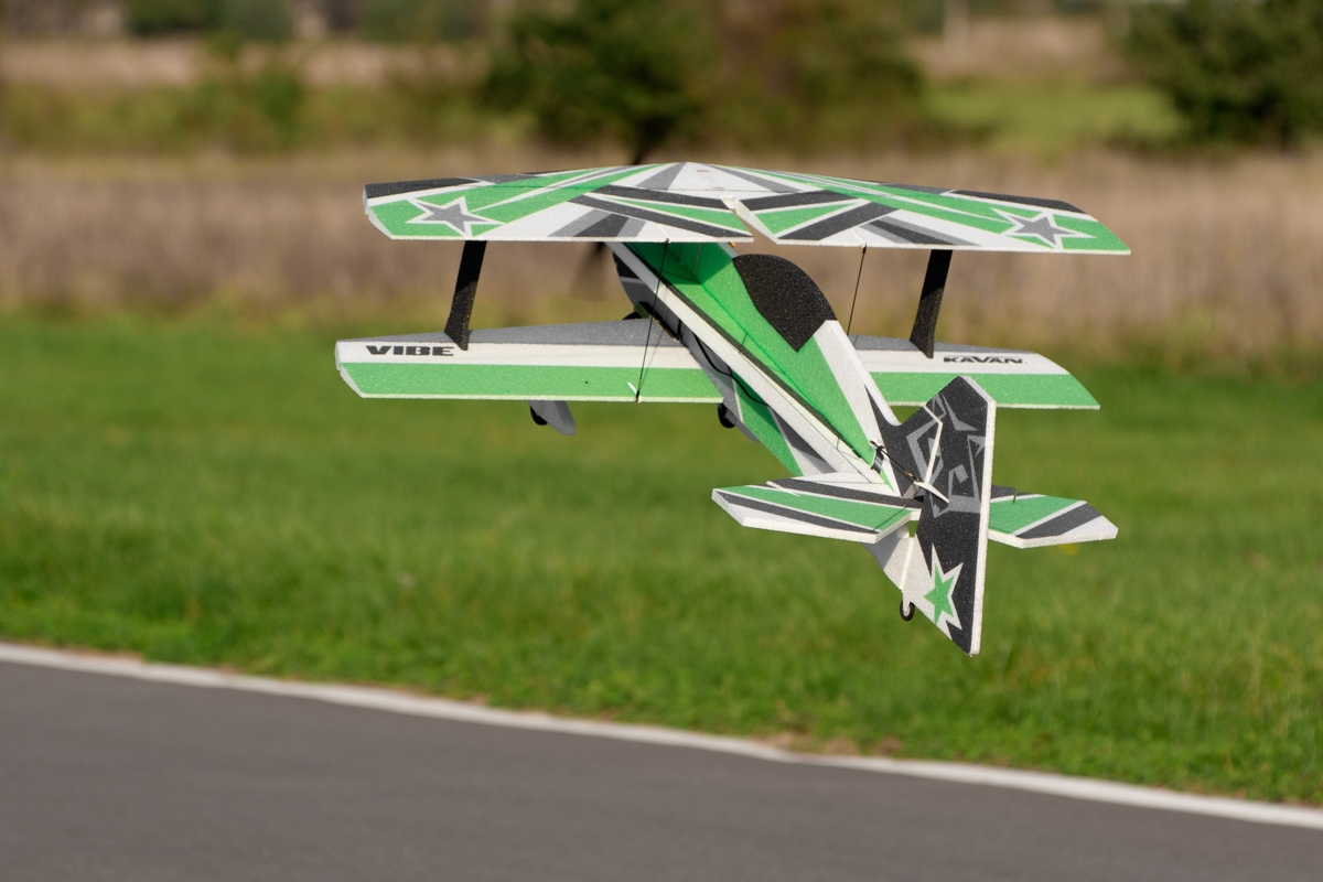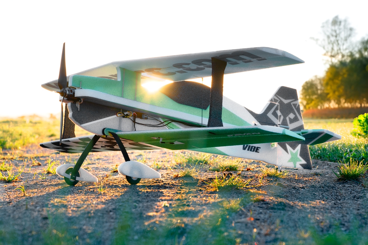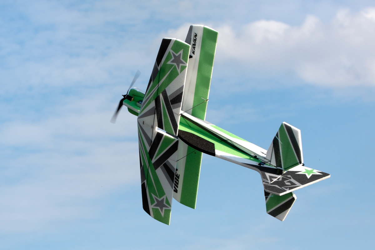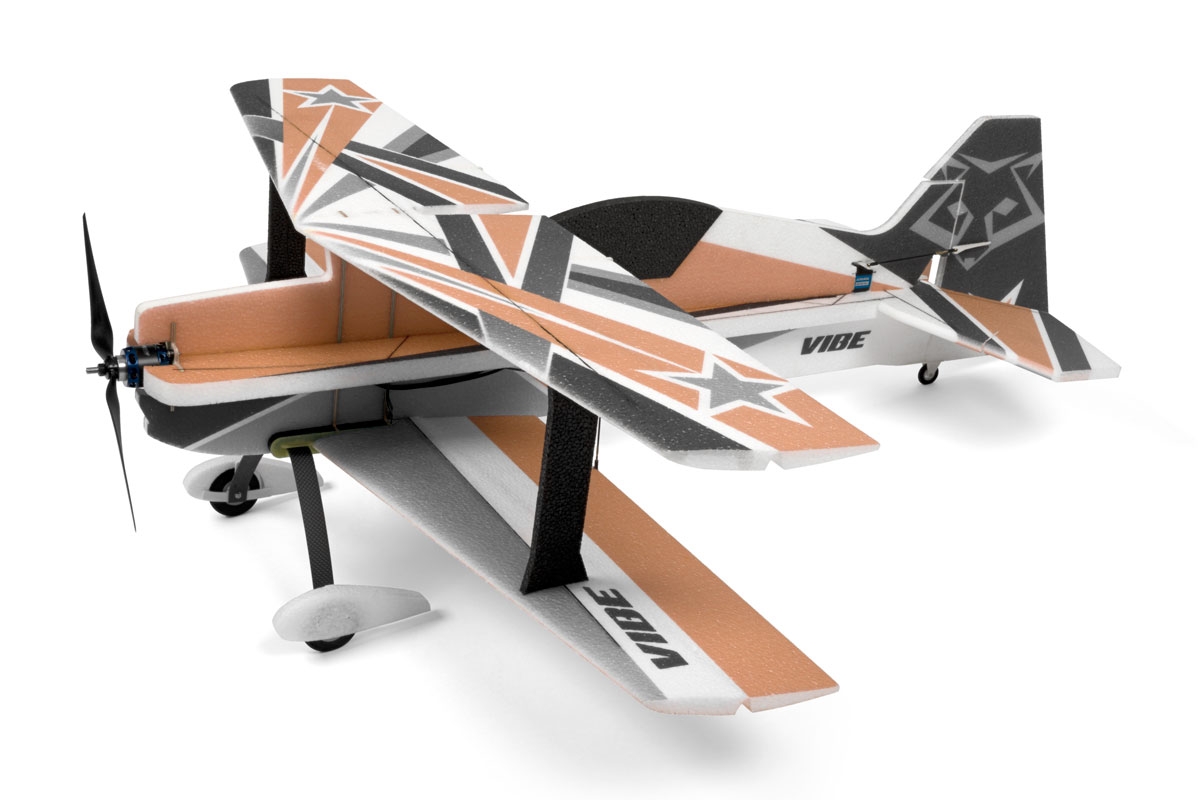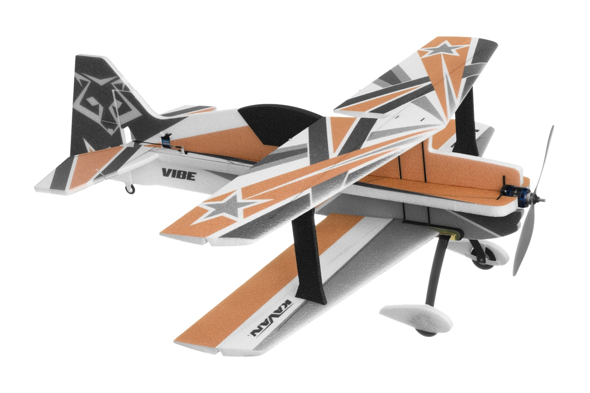 VIBE ist ein leistungsstarker Doppeldecker 3D-Kunstflug-Park-Flyer aus EPP-Schaum, der mit einem 350-500 W Brushless-Elektromotor angetrieben wird. Ein paar Stunden mit einem Sekundenkleber in der Hand genügen, um dieses Modell fertigzustellen. Man kann dann Figuren der F3A Standardkategorie sowie 3D Akrobatik genießen! Das Modell eignet sich auch für weniger erfahrene Piloten. Mit kleineren Ausschlägen kann mit ihm jeder fliegen, der zumindest etwas Kunstflugerfahrung hat und in der Lage ist, Loopings, Turns und Rollen zuverlässig zu fliegen. Dank dem geringen Gewicht des Modells entsteht bei einem Unfall nicht zu viel Schaden – und EPP Teile lassen sich so leicht reparieren!