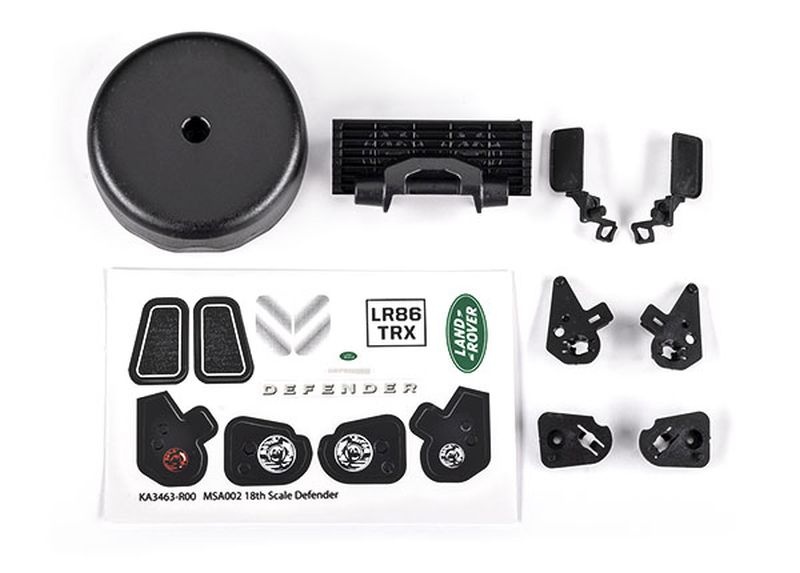 Dieses Set enthält alles, was du benötigst, um deinen Defender TRX-4m mit Grill, Seitenspiegeln, Schnorchel und vielen weiteren Kleinteilen auszustatten.
