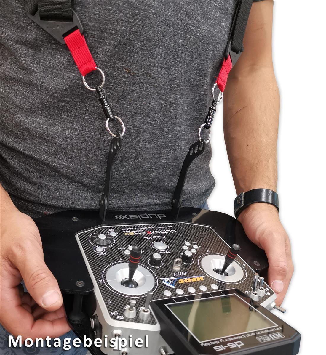 Vorbei ist das Ein- und Aushängen der schwergängigen Haken. Mit diesen Schnellverschlüssen clipsen Sie in Sekunden ihren Sender an und ab.