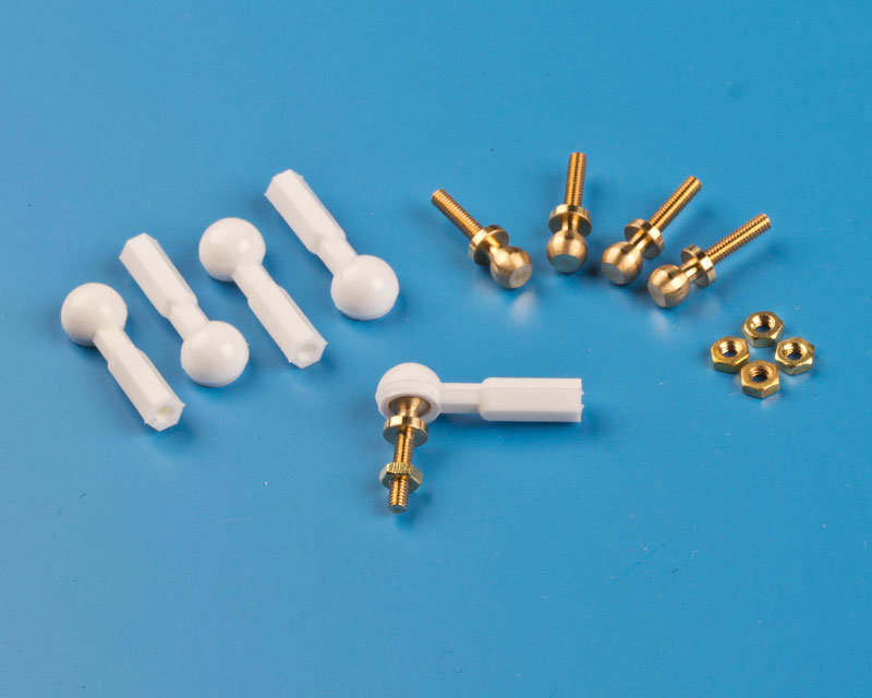 Die Kugelpfanne aus Kunststoff mit Kugelkopf und Mutter aus Messing.