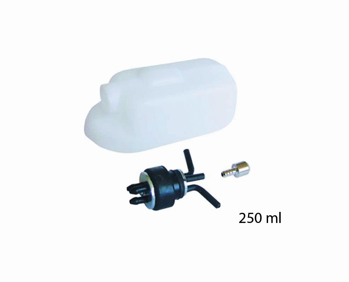 Kunstflugtank aus Kunststoff mit 3 Anschlüssen. Das gewährleistet einen zuverlässigen und gleichmäßigen Lauf des Motors in allen Fluglagen. Die Konstruktion erlaubt eine vollständige Entleerung des Tanks. Der Tank ist für Benzin und Methanol geeignet.
