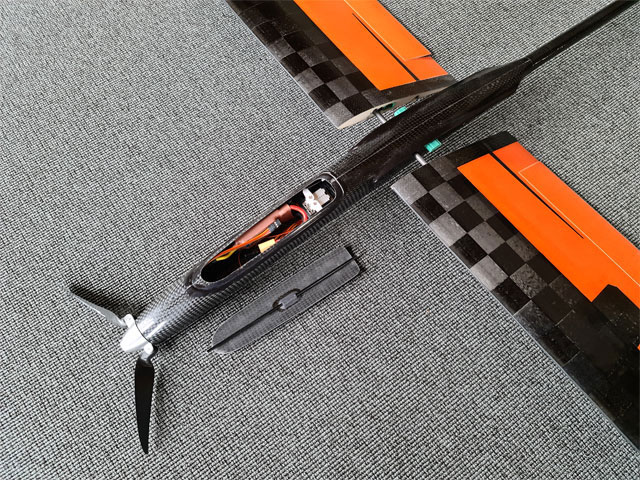 Der Rumpf besteht aus einer Kohlefaser-Gondel, an die sich ein handgewickeltes Glas-Carbon-Rohr anschliesst. Durch die Kabinenhaube ist der grösszügige Raum für alle Komponenten gut zugänglich.