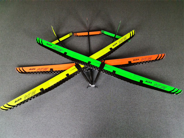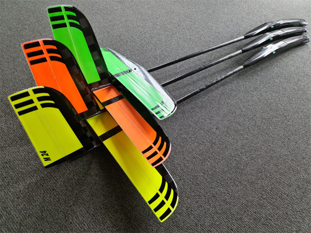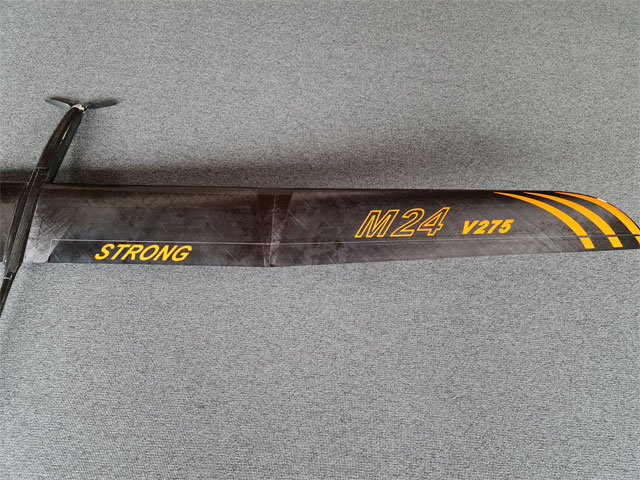 Der M24 V275 ist in drei verschiedenen Neon Farben erhältlich. Alle Neon Farben sind in der Luft hervorragend zu erkennen. Wer sich für die Strong Variante entscheidet, hat eine edle voll CFK Fläche mit orangen Zierstreifen für eine bessere Lageerkennung.