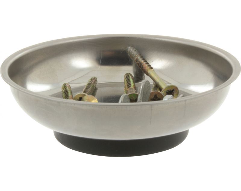 Magnetische Aufbewahrungsmöglichkeit für verschiedene metallische Kleinteile wie Schrauben, Muttern, Klammern usw. Gummierter magnetischer Haftbereich für kratzfreies fixieren der Schale an den unterschiedlichsten Stellen, auch über Kopf.