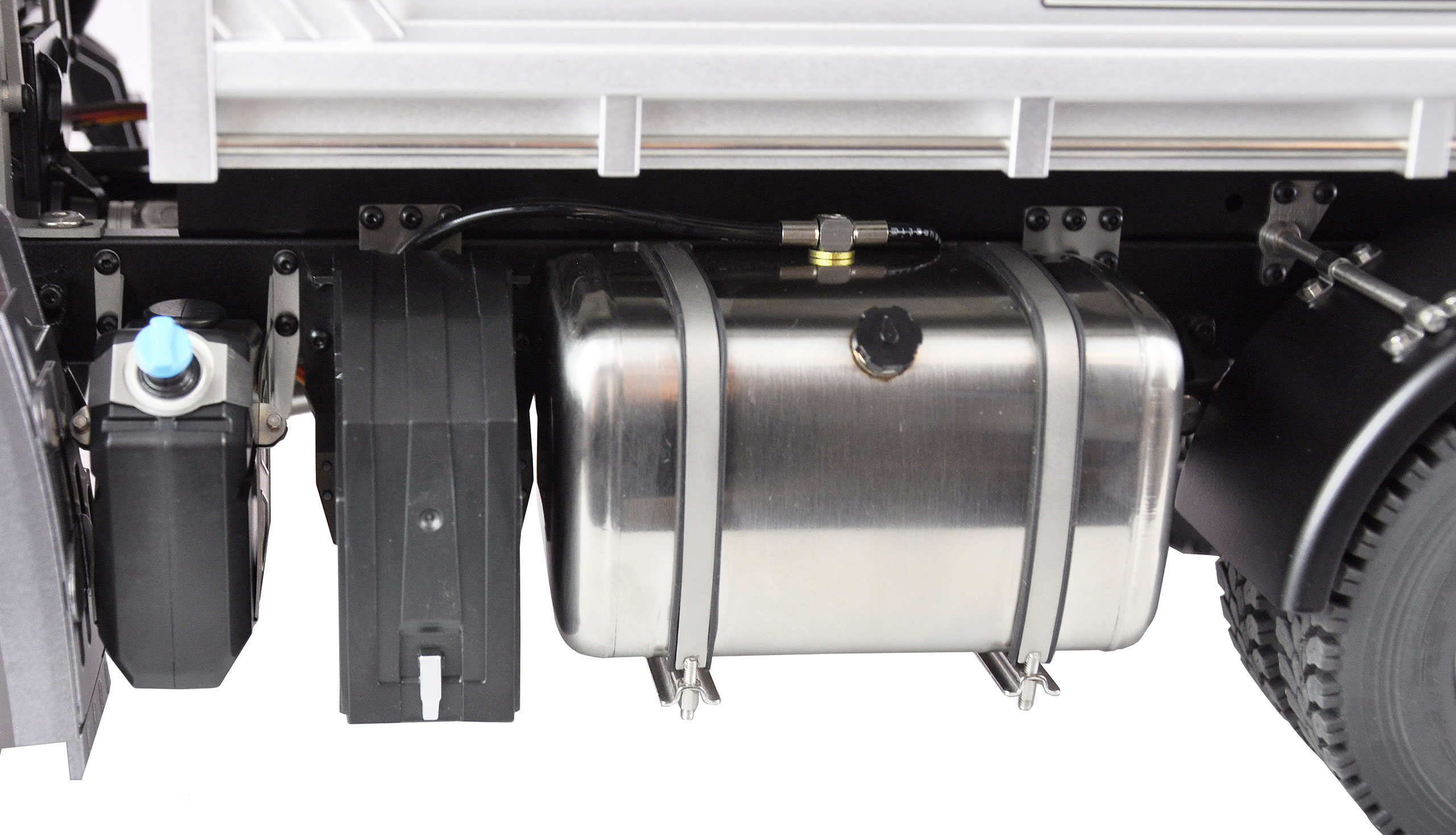 Das Fahrzeug wird fertig aufgebaut als RTR-Version (Ready-to-Run) in einer sicheren Transportbox geliefert. Lediglich ein paar Anbauteile müssen noch angeklebt und das Hydraulik-Öl eingefüllt werden – nach Laden des Akkus und Einlegen der Sender-Batterien, kann sofort die erste Fahrt unternommen werden.