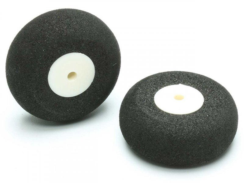 Räder für Flugmodelle etc., stabile und leichte Nylonfelge mit aufgezogenem Moosgummireifen.
