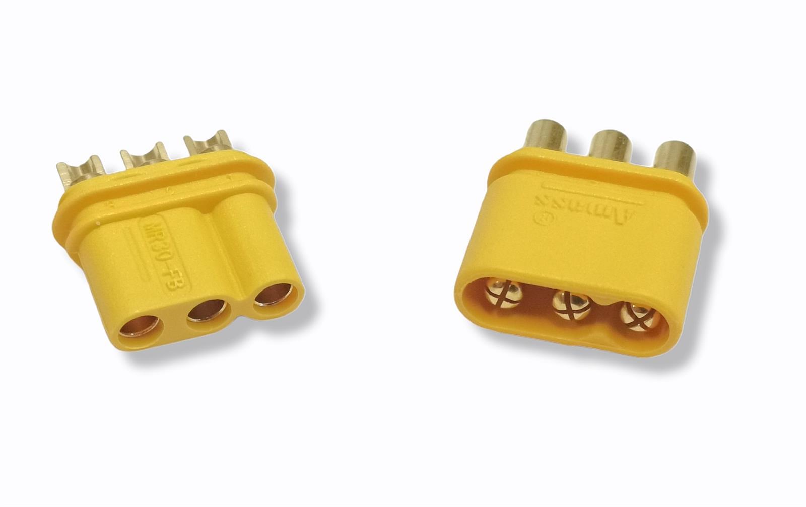 Dreipoliger Stromanschluss mit vergoldeten Kontakten mit max. 30 A Nennleistung.