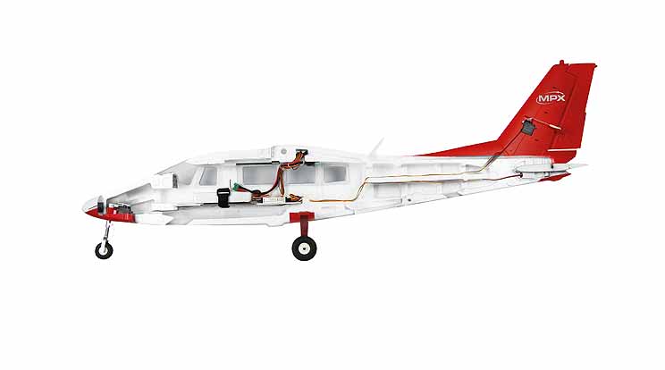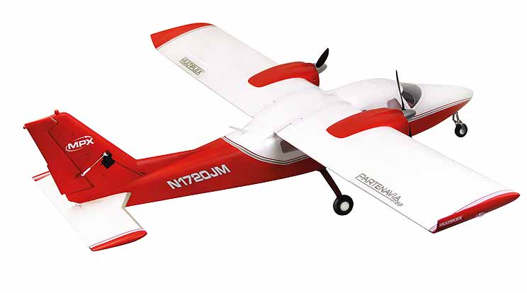 Die neue Partenavia P68 von Multiplex mit 1400mm Spannweite ist ein vorbildähnlicher Nachbau für fortgeschrittene Modellpiloten. Durch die beiden gegenläufigen, bürstenlosen Motoren vom Typ ROXXY BL Outrunner C28-28-1400kV, in Verbindung mit den beiden Reglern vom Typ MULTIcont BL-20 P68 und einem 3S2600 mAh Akku, ist das Modell optimal motorisiert und hat bei Geschwindigkeitswechseln keinerlei Tendenz zu gieren. Das Modell fliegt ausgesprochen gutmütig und lässt auch Kunstflugfiguren wie Rollen, Loopings und Rückenflug zu.