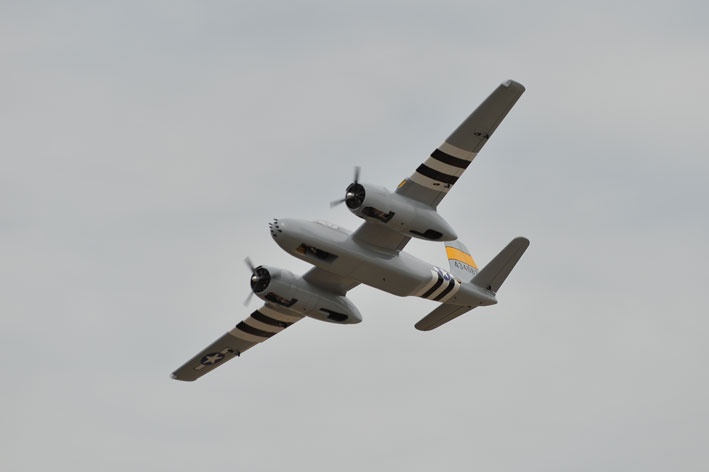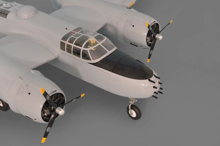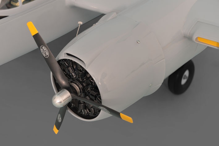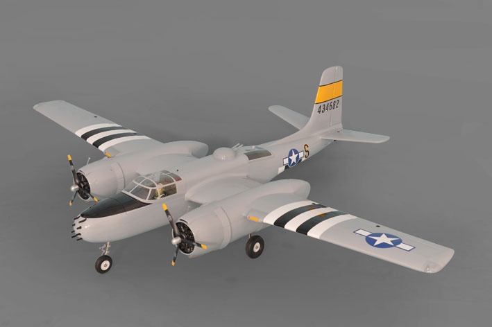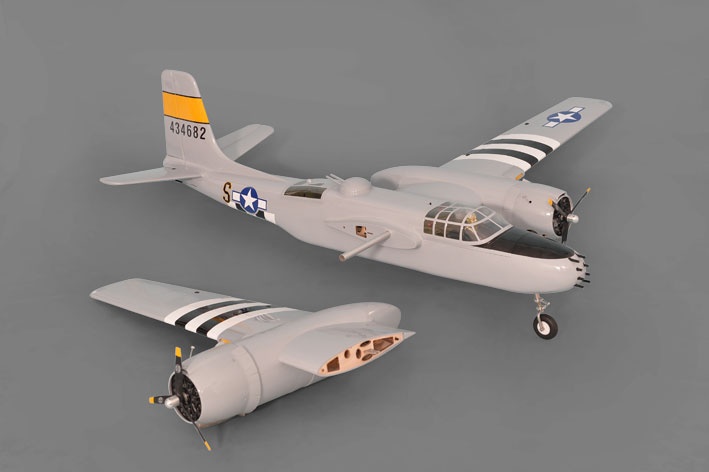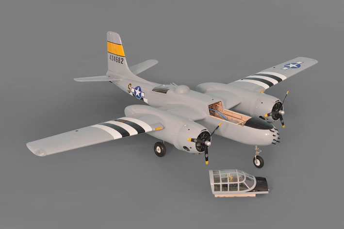 Die A26 Invader ist ein zweimotoriger Bomber, der u.a.von den Amerikanern im zweiten Weltkrieg als auch im Vietnamkrieg eingesetzt wurde. Die Motorgondeln / Hauben sind aus GFK gefertigt und fertig lackiert. Das Modell ist komplett aus Holz hochwertig aufgebaut und mit Original Oracover Folie bespannt. Das Modell besticht unter anderem durch ein ausgebautes Cockpit, ein Einziehfahrwerk, Landeklappen und vielen weiteren Details. Mit den empfohlenen kraftvollen Motoren erreicht das Modell beeindruckende Flugleistung. Konzipiert ist das Modell für zwei 7,5 ccm Verbrennungsmotoren oder zwei 42 mm Brushless Motorn. Die A26 Invader ist bis zu 95% vorgefertigt und mit Oracover Folie bespannt, alle Kleinteile, die für den Aufbau benötigt werden, sind im Lieferumfang enthalten.
