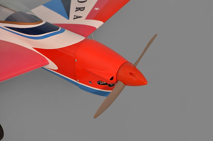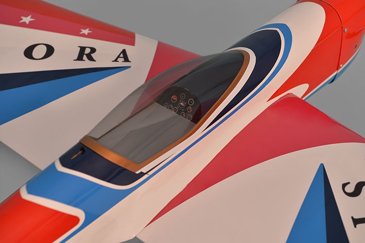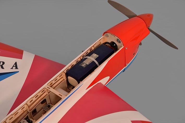 Eigenschaften • Elektro- oder Verbrennerbetrieb möglich • extrem leichte und hochfeste, lasergeschnittene Holzkonstruktion • hoher Vorfertigungsgrad • Bespannung mit Original ORACOVER® Folie • abnehmbare Kabinenhaube aus GFK • inklusive 58mm Spinner aus Kunststoff
