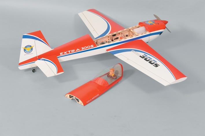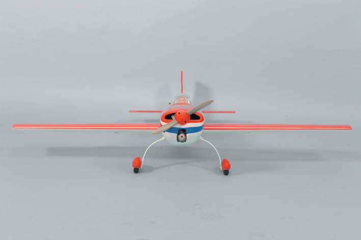 Das Modell ist in Balsa-Leichtbauweise aufgebaut. Die Esxtra 300S ist mehrfarbig mit original Oracover bespannt und besticht durch ihre perfekte Verarbeitungsqualität und die hohe Passgenauigkeit. Die Motorhaube und die Radverkleidungen sind aus GfK gefertigt und bereits fertig lackiert.