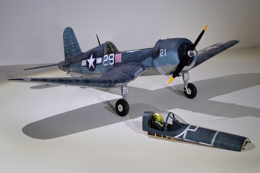 Die 4FU Corsair von Phoenix ist ein originalgetreuer Warbird mit 2,17m Spannweite. Das Modell ist in einer extrem leichten und hochfesten Holzbauweise konstruiert und ist ausgelegt für Elektro- oder Verbrenner-Antriebe.