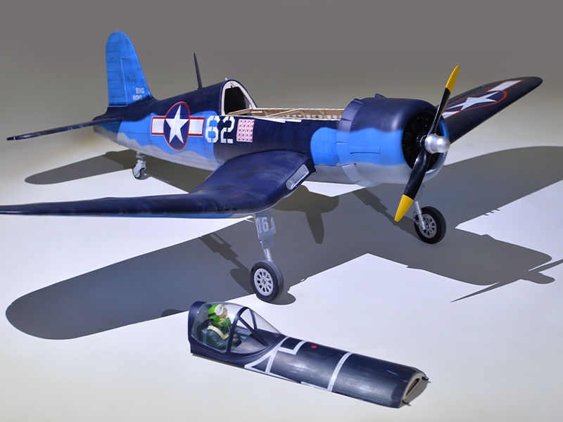 Elektro oder Verbrenner Dieses Modell kann beides! Die Konstruktion ist sowohl für den Elektro-Antrieb als auch für den Antrieb mit Verbrennungsmotoren vorbereitet. Die einzige Frage ist also: mordsmäßiger Sound oder lieber absolute Effizienz? Eigenschaften: • Elektro- oder Verbrennerbetrieb möglich • extrem leichte und hochfeste, lasergeschnittene Balsa-/Sperrholzkonstruktion • hoher Vorfertigungsgrad, fertig bespannt und lackiert • abnehmbare Tragfläche für einen einfachen Transport • funktionsfähige Landeklappen • abnehmbare Kabinenhaube • detailliertes Cockpit mit Pilotenfigur • viele Scale Details • inklusive elektrischem, stoßdämpfendem Metall-Einziehfahrwerk • inklusive gefedertes Bugfahrwerk • hervorragende Flugeigenschaften Technische Daten: • Spannweite: 1800 mm • Länge: 1467 mm • Fluggewicht: ca. 6.600-6.800 g • Flächeninhalt: 56,0 dm² • Flächenbelastung: 117 g/dm² • Flächenprofil: Naca Benötigtes Zubehör: • Fernsteuerung: mind. 6 Kanäle • Empfänger: mind. 6 Kanäle • Antrieb: Elektro (1600-2200W, 450KV) oder Verbrenner 26-30ccm • Luftschraube: entsprechend dem Antrieb • 2x Standard Servo D-Power DS-570BB MG Querruder • 2x Standard Servo D-Power DS-570BBMG Landeklappen • 1x Standard Servo D-Power DS-570BB MG Höhenruder • 1x Standard Servo D-Power DS-570BB MG Seitenruder • (1x Standard Servo für Gas) • Spinner 44mm Elektro-Antriebsempfehlung: • Brushless Motor: D-Power AL50-04 • Brushless Motor Set: D-Power SET BL-Motor AL50-00 & Regler 80 • Akku: D-Power KRAFTPAKET 5000 6S LIPO 22,2 V 35/70C – XT90 Verbrenner-Antriebsempfehlung: • Motor: 120 2-Takt oder 140 4-Takt oder 26-30ccm • 1 zusätzliches Standard Servo für Gas