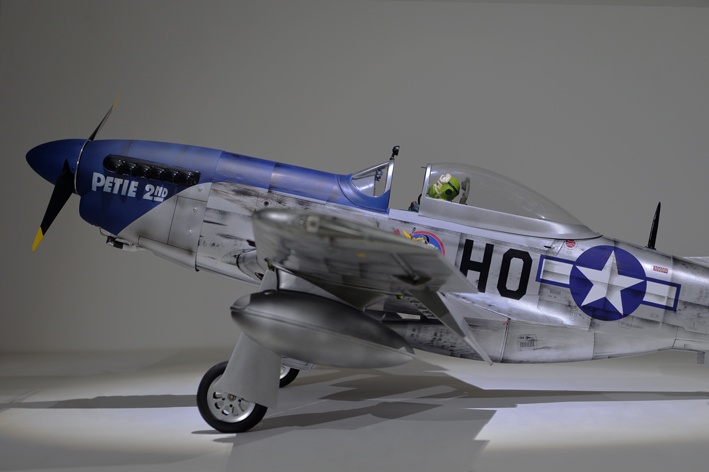 Dieses Modell von Phoenix steht seinem Vorbild in nichts nach. Viele schöne Detaillösungen lassen die P-51 bei der Betrachtung am Boden wie das Original wirken. Ein Scale-Spinner, Rückspiegel, Antennen, Bewaffnungen und Zusatz-Tanks runden das „scalige“ Bild ab. Und auch in der Luft gibt das Modell ein absolut „scales“ Flugbild ab, welches vom Flugbild des manntragenden Vorbilds kaum zu unterscheiden ist. Auch in der Kabine sind Cockpit, Pilot und Instrumente realistisch nachempfunden.