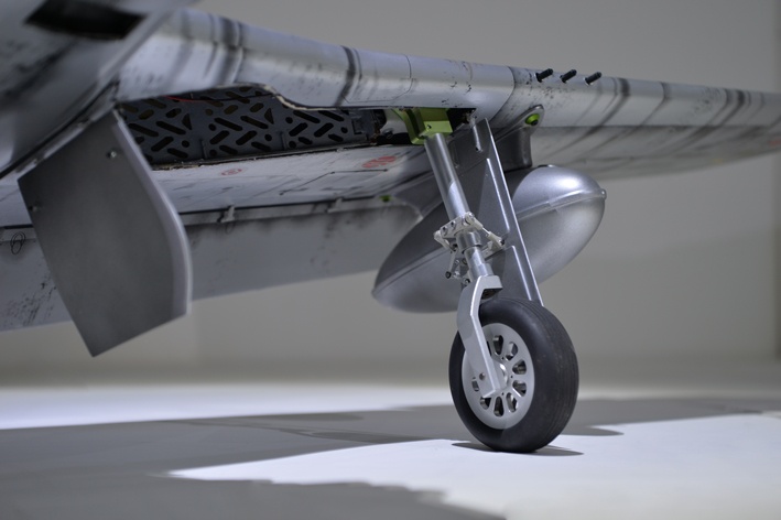 Das Modell kommt mit einem elektrisch einziehbaren Hauptfahrwerk und einem ebenfalls elektrisch einziehbarem Bugfahrwerk. Die Fahrwerksbeine sind vollständig aus CNC-gefrästem Metall gefertigt.