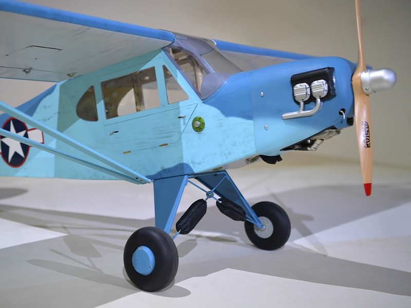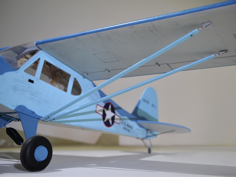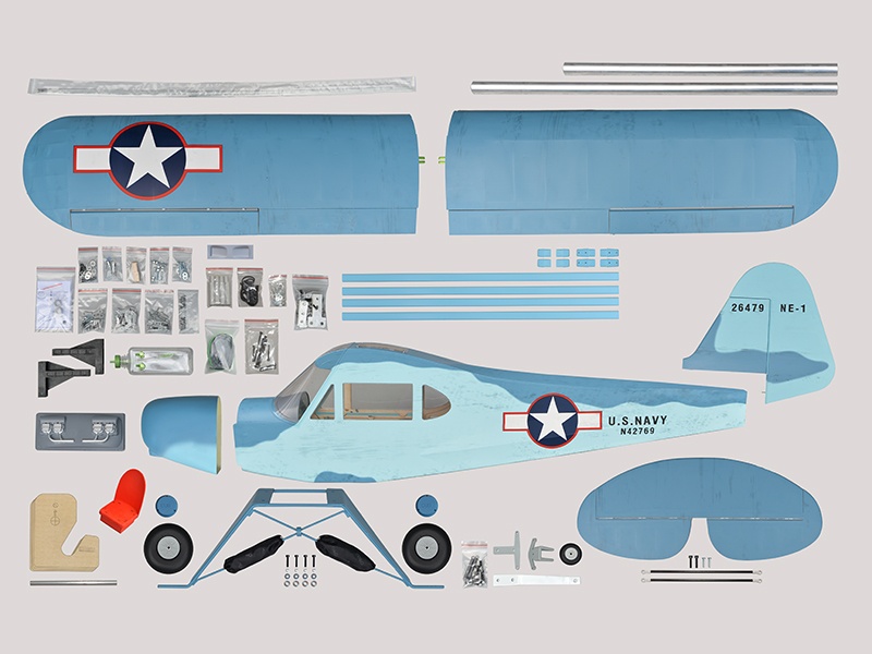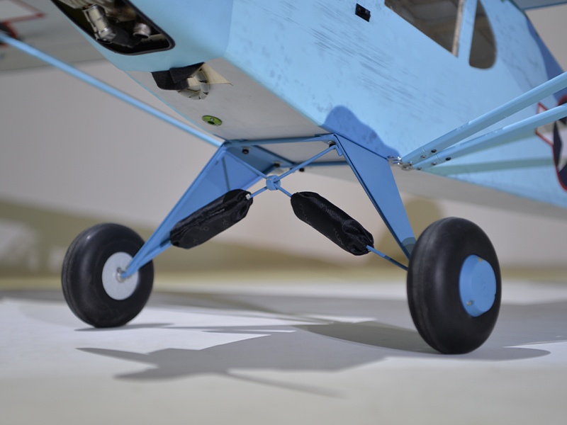 Das Modell ist in extrem leichter und hochfester Balsa-/Sperrholzbauweise gefertigt. Dabei besticht die lasergeschnittene Konstruktion durch einen enorm hohen Vorfertigungsgrad, wodurch sich der Bauaufwand nahezu auf den Einbau von Antrieb und Elektronik reduziert. Unter der abnehmbaren Kabinenhaube befindet sich viel Platz für den Einbau der Elektronik. Die Piper ist komplett fertig mit bedruckter Folie bespannt.