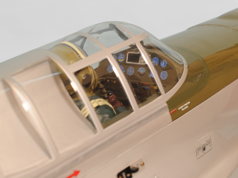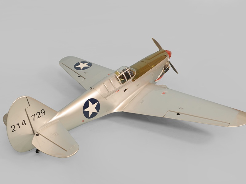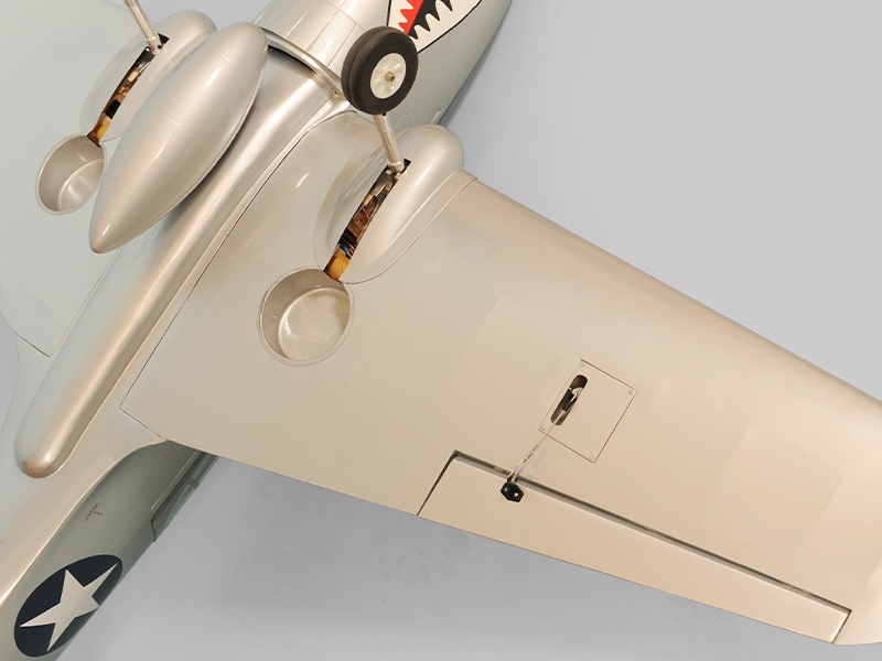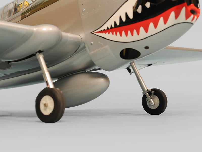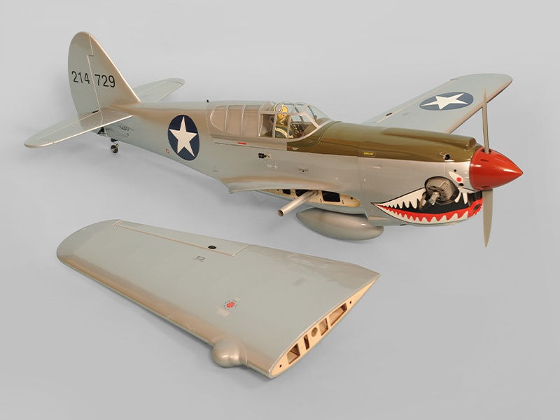 Das Modell ist in extrem leichter und hochfester Balsa-/Sperrholzbauweise gefertigt. Dabei besticht die lasergeschnittene Konstruktion durch einen enorm hohen Vorfertigungsgrad, wodurch sich der Bauaufwand nahezu auf den Einbau von Antrieb und Elektronik reduziert. Unter der abnehmbaren Kabinenhaube befindet sich viel Platz für den Einbau der Elektronik. Die P-40 Kitty Hawk ist komplett fertig mit Folie bespannt.