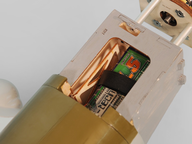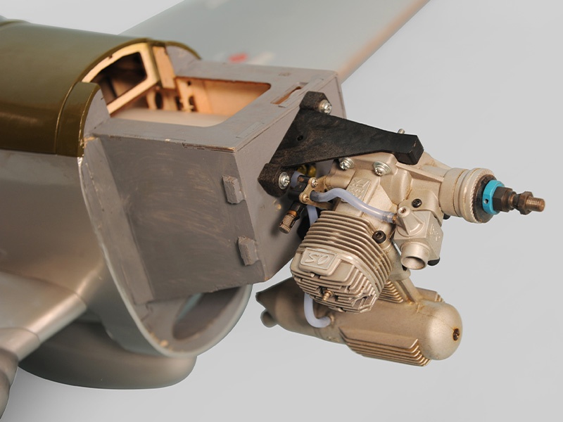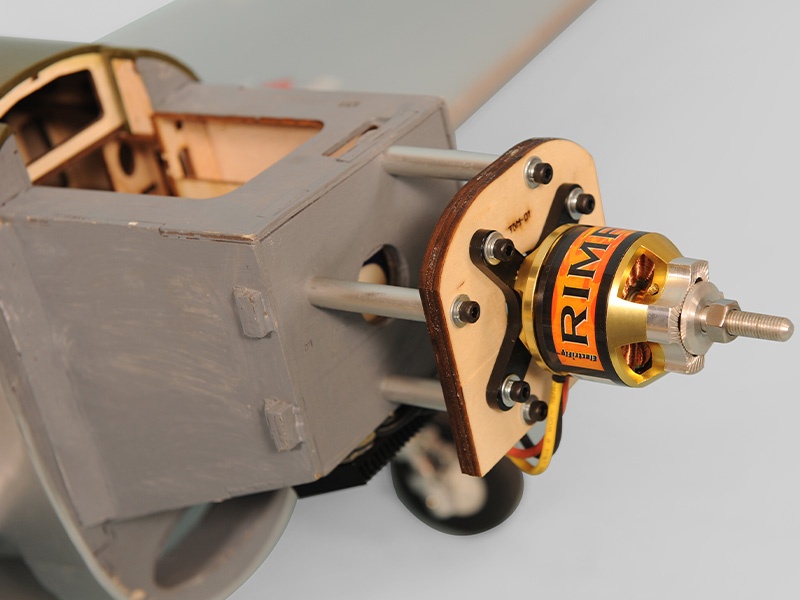 Das Modell kommt mit einem elektrisch einziehbaren Hauptfahrwerk und einem gefederten Bugfahrwerk. Die Fahrwerksbeine sind vollständig aus CNC-gefrästem Metall gefertigt.