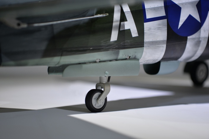 Das Modell kommt mit einem elektrisch einziehbaren Hauptfahrwerk und einem ebenfalls elektrisch einziehbarem Bugfahrwerk. Die Fahrwerksbeine sind vollständig aus CNC-gefrästem Metall gefertigt.