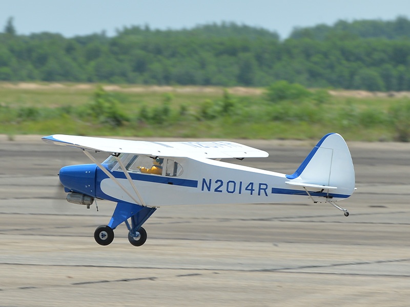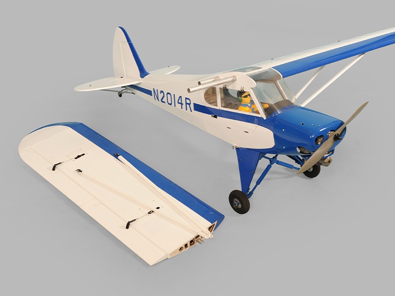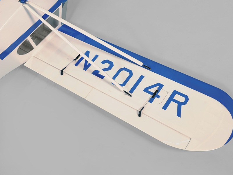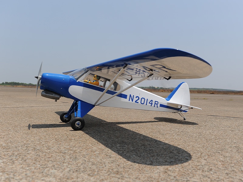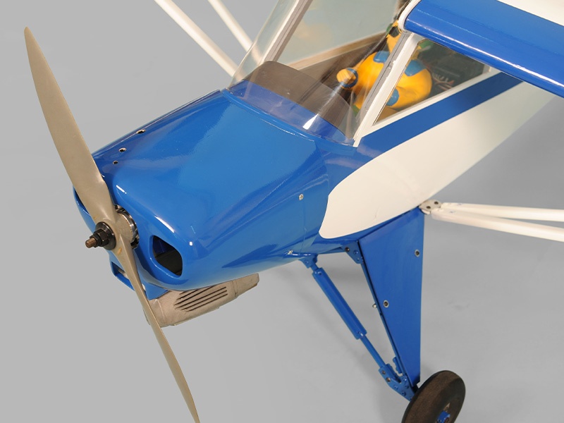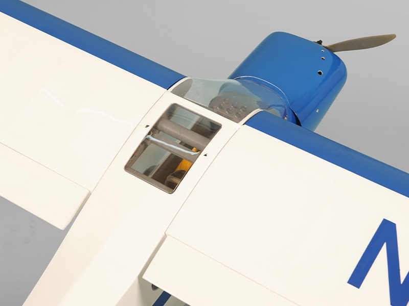 Das Modell ist in extrem leichter und hochfester Balsa-/Sperrholzbauweise gefertigt. Dabei besticht die lasergeschnittene Konstruktion durch einen enorm hohen Vorfertigungsgrad, wodurch sich der Bauaufwand nahezu auf den Einbau von Antrieb und Elektronik reduziert. Unter der abnehmbaren Kabinenhaube befindet sich viel Platz für den Einbau der Elektronik. Die Piper ist komplett fertig mit bedruckter Folie bespannt.