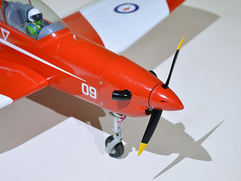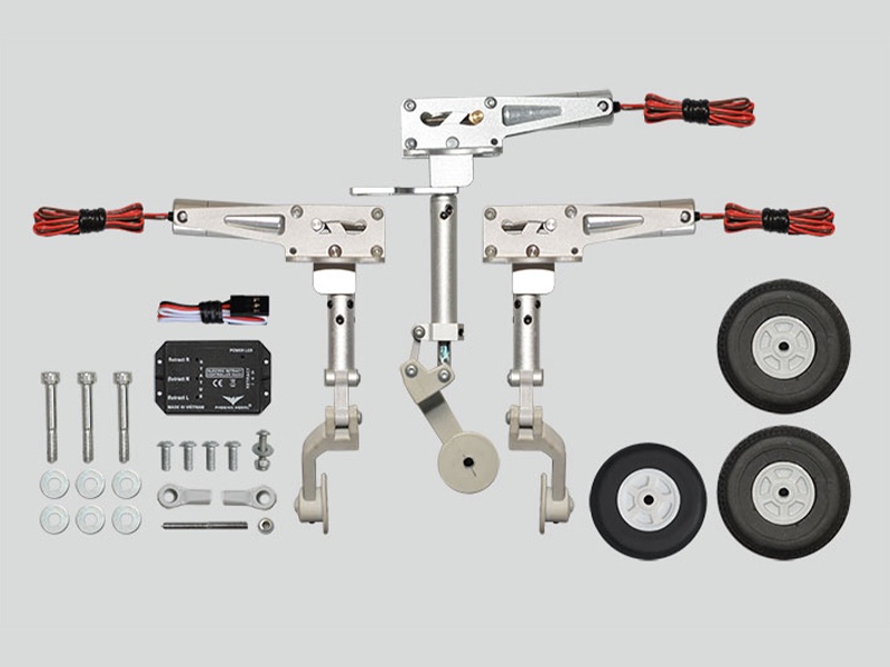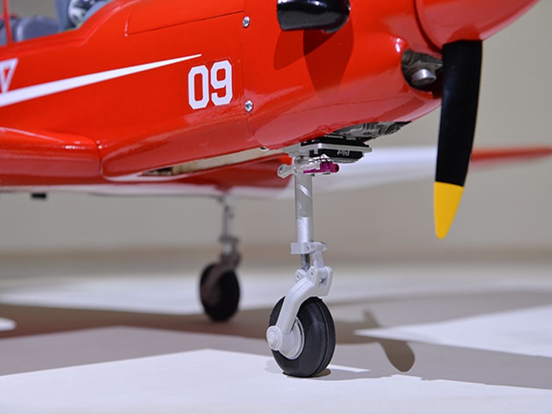 Elektrisches Einziehfahrwerk inklusive Das Modell kommt mit einem elektrisch einziehbaren Hauptfahrwerk und einem gefederten Bugfahrwerk. Die Fahrwerksbeine sind vollständig aus CNC-gefrästem Metall gefertigt.