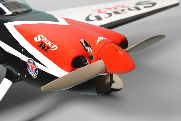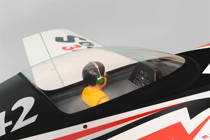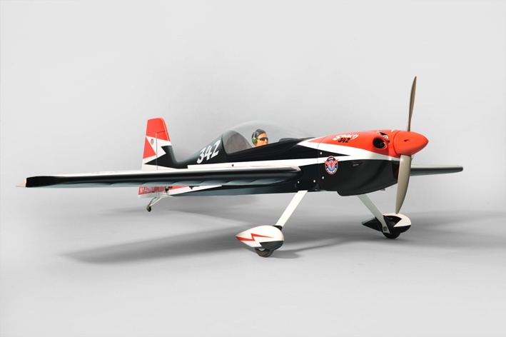 Die SBACH 120 von Phoenix ist wie ihr kleinerer Bruder von sehr hoher Fertigungsqualität und überzeugt mit vielen guten Detaillösungen wie einem profiliertes Höhenleitwerk, die Tragfläche ist zweiteilig und steckbar. Das Modell ist für Glühzünder mit 20ccm Hubraum ausgelegt, kann aber auch mit Elektroantrieben für 8 Zellen Lipo ausgerüstet werden. Die SBACH ist ARF-typisch fertig aus laser-geschnittenen Holzteilen aufgebaut und mit original Oracover Folie bespannt. Die Motorhaube und Radschuhe sind aus GFK gefertigt, wobei der Fahrwerksbügel aus Aluminium besteht. Diese große SBACH ist gleichermaßen ausgelegt für dynamischen Kunstflug und für 3D-Flug. Hier überzeugt das Modell durch Präzision und hohe Agilität.