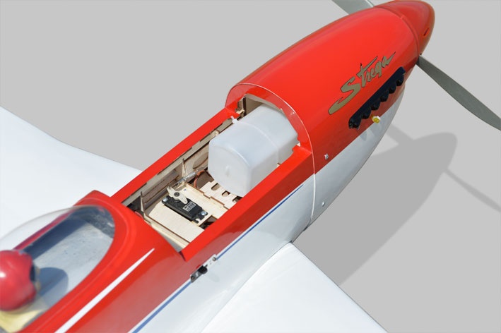 Konzipiert ist das Modell für einen 30.0 ccm Verbrennungsmotor oder einem 63 mm Brushless Motor. Der Zugang zum Antriebsakku erfolgt durch eine abnehmbare Klappe vor der Kabinenhaube.