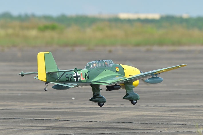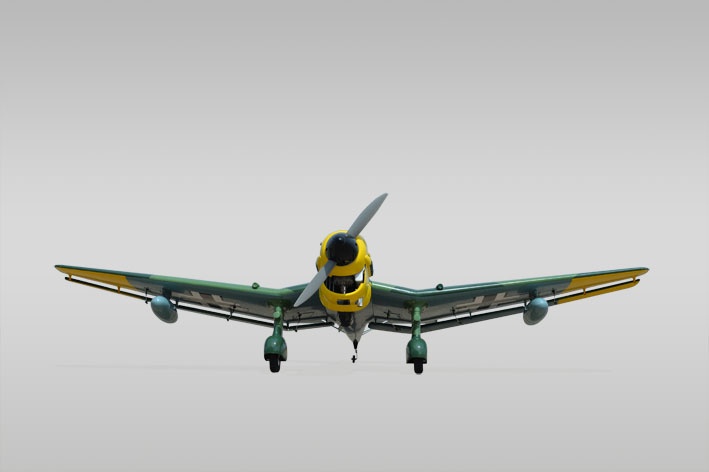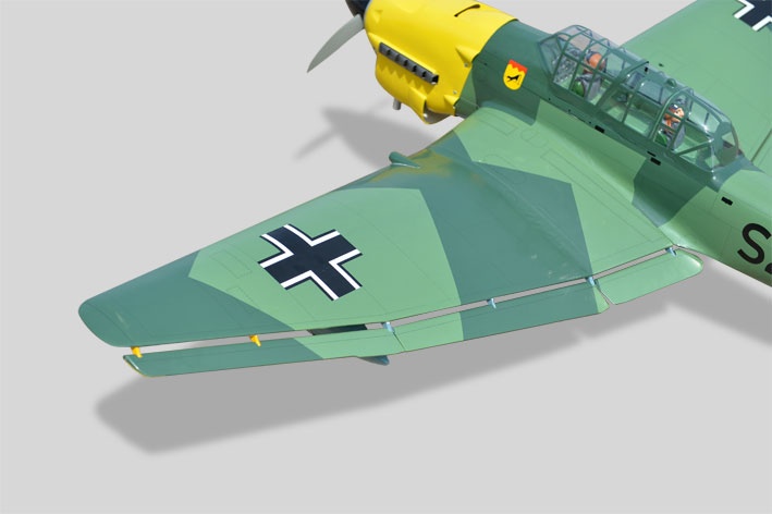 Die Motorhaube und Radschuhe sind aus GFK gefertigt und fertig lackiert. Der STUKA Ju87 Bomber ist komplett aus Holz hochwertig aufgebaut und mit Original Oracover Folie bespannt. Hervorzuheben sind die vorbildgetreuen Querruder und Landeklappen. Mit den empfohlenen kraftvollen Motoren erreicht das Modell beeindruckende Flugleistung. Das Modell hat ein sehr gutmütiges Flugverhalten, welches auf die Größe, den Knickflügel und die Bauweise als Unterdecker zurückzuführen ist.