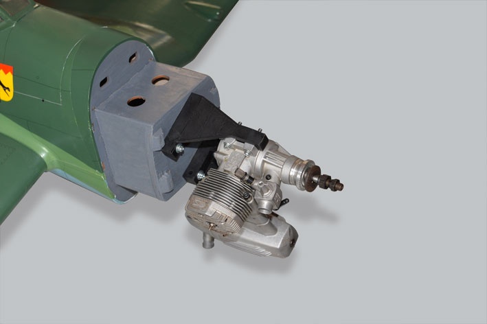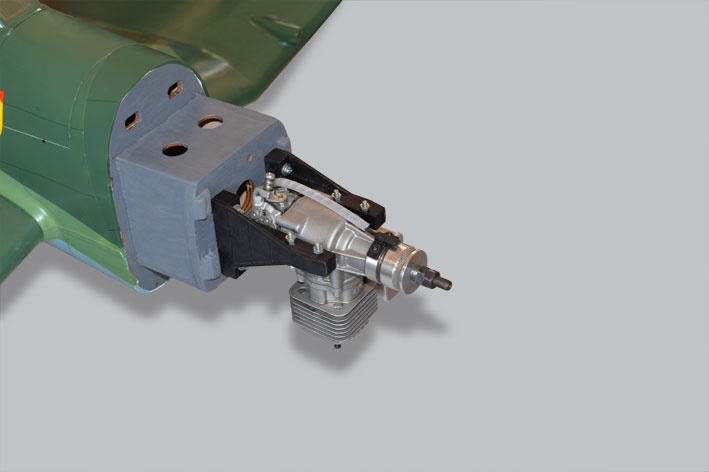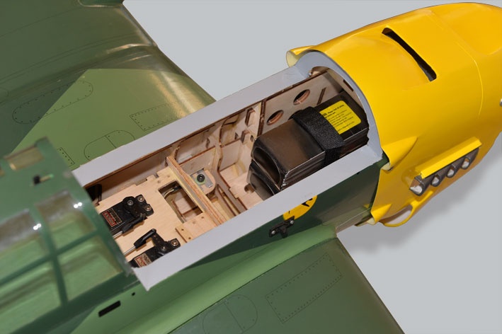 Konzipiert ist das Modell für einen 20.0 ccm Verbrennungsmotor oder einem 50 mm Brushless Motor. Der Zugang zum Antriebsakku erfolgt durch die abnehmbare Kabinenhaube.