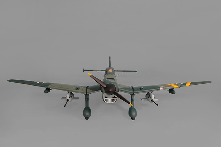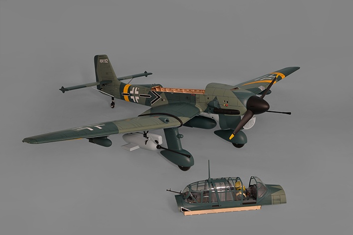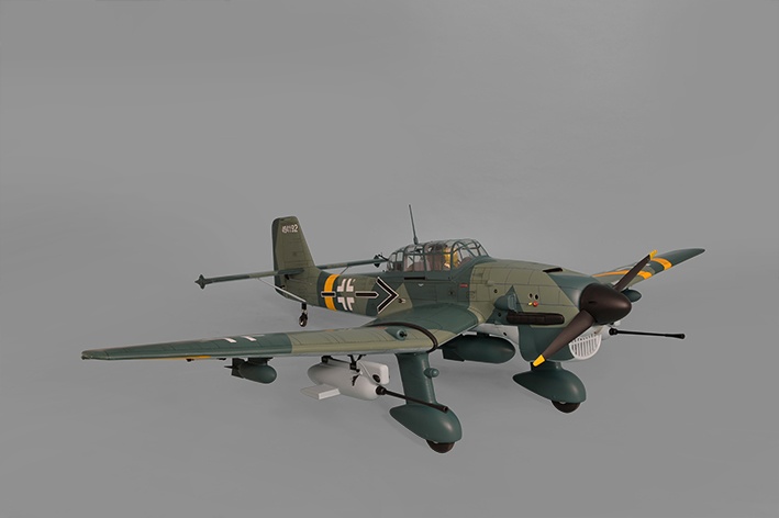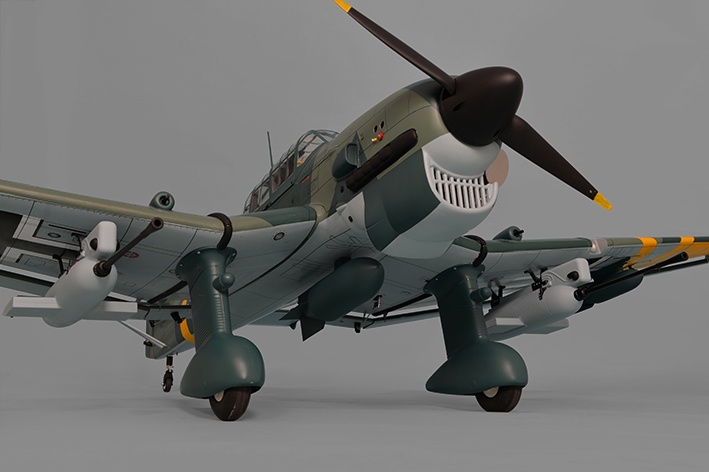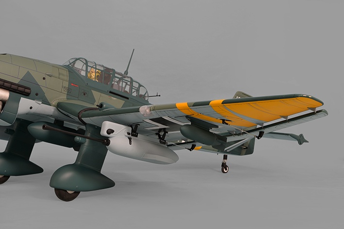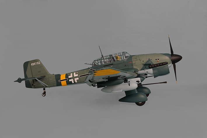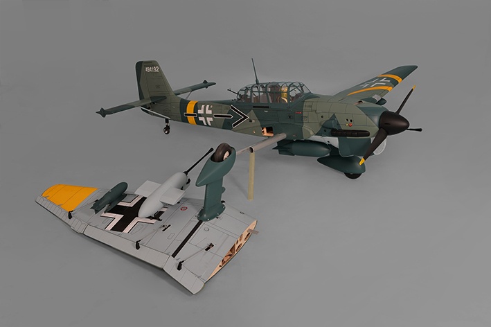 Konzipiert ist die Phoenix Stuka Ju87 für einen 82 mm Brushless Motor oder einen 50 – 60ccm Verbrennungsmotor. Der Zugang zum Antriebsakku erfolgt durch die abnehmbare Kabinenhaube. Alle für den Aufbau benötigten Hardware Teile sind – genau wie der Scale Spinner, die Scale Antenne, Scale Bewaffnung und vieles mehr – im Lieferumfang enthalten.