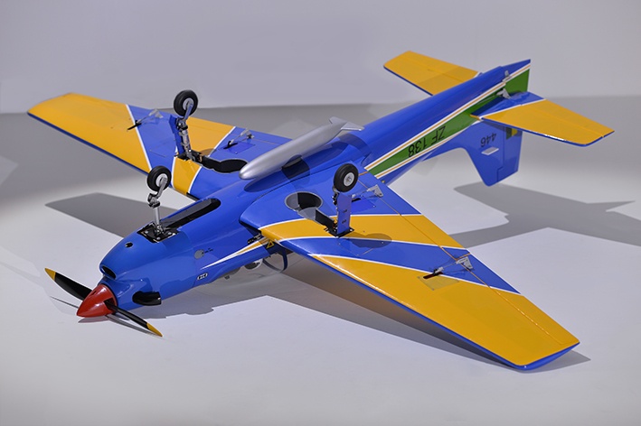 Enorm hoher Vorfertigungsgrad Das Modell ist in extrem leichter und hochfester, lasergeschnittener Balsa-Holzbauweise gefertigt. Dabei besticht die Konstruktion durch einen enorm hohen Vorfertigungsgrad, wodurch sich der Bauaufwand nahezu auf den Einbau von Antrieb und Elektronik reduziert. Das Modell ist bereits vollständig mit Oracover®-Folie im Stile der brasilianischen Luftwaffe bespannt.