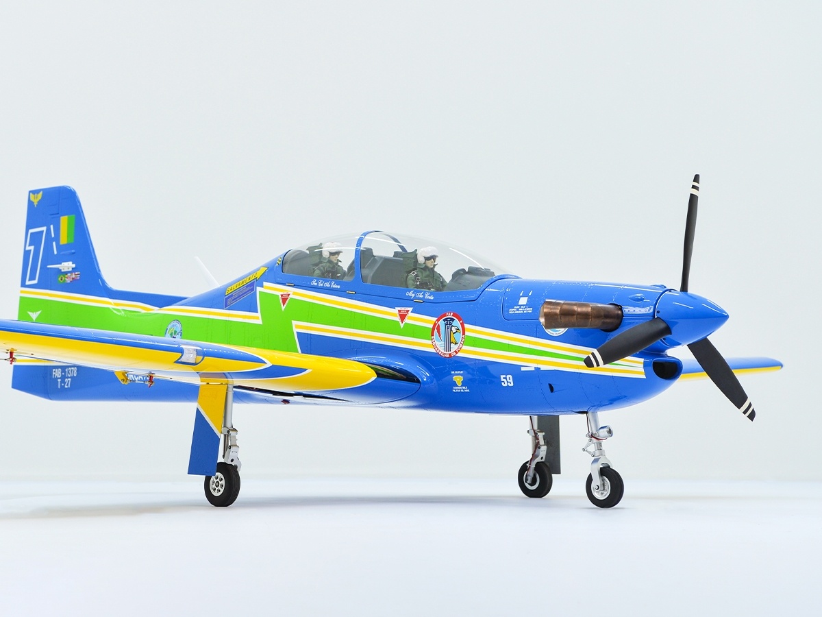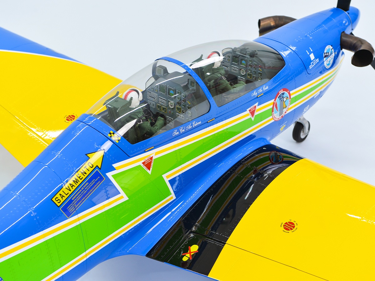 Das Modell überzeugt sowohl mit seinem realistischen Erscheinungsbild als auch mit dynamischen Flugeigenschaften – ideal für detailverliebte Piloten, die ein Jet-ähnliches Fluggefühl mit Propellerantrieb suchen. Präziser Kunstflug, schnelle Überflüge und sicheres Handling im gesamten Geschwindigkeitsbereich zeichnen die Flugeigenschaften der Tucano aus.