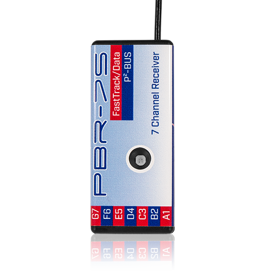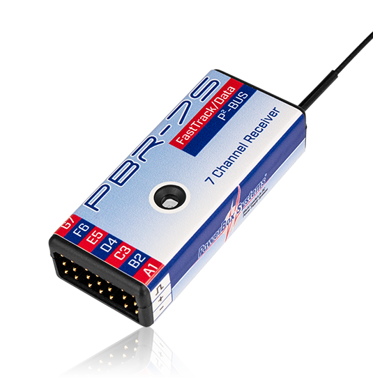 Ist ein 7 Kanal Empfänger mit einem Empfangsteil. Der Empfänger besitzt eine P²BUS Schnittstelle für Servo- und Telemetrie Daten und einen Zusatzausgang der wahlweise als SRXL-Bus oder als Kanal 8 umgestellt werden kann.