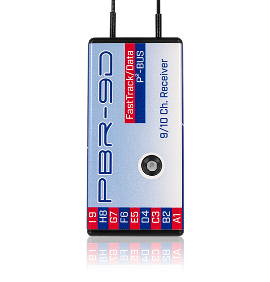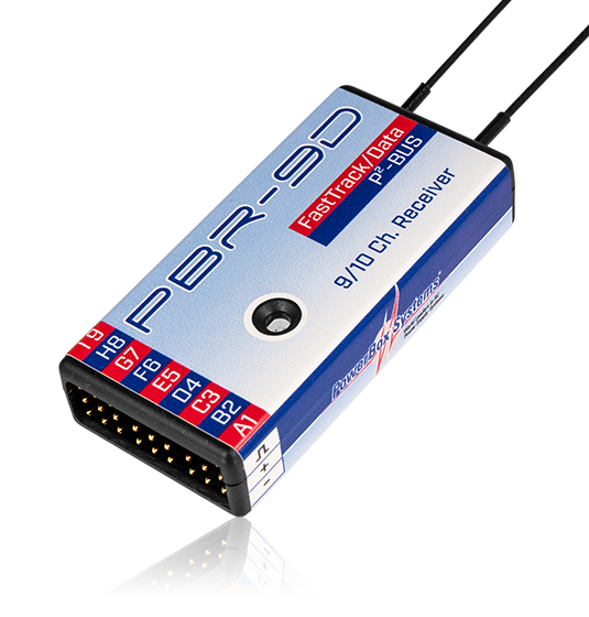 Ist ein 9 Kanal Empfänger mit zwei redundanten Empfangsteilen. Der Empfänger besitzt eine P²BUS Schnittstelle für Servo- und Telemetrie Daten und einen Zusatzausgang der wahlweise als SRXL-Bus oder als Kanal 10 umgestellt werden kann.