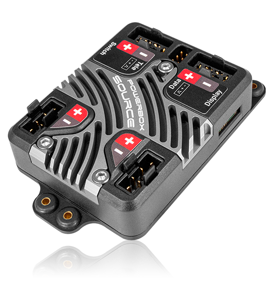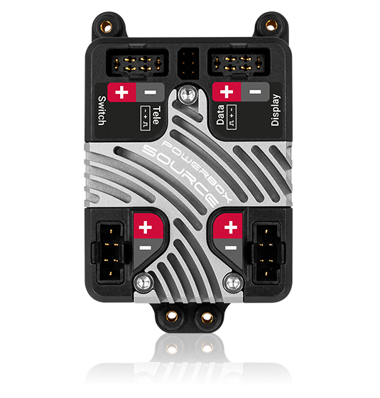 Die PowerBox Source ist die konsequente Weiterentwicklung der erfolgreichen BaseLog. Kundenwünsche und Anforderungen an moderne Telemetrie Systeme wurden mit eingepflegt. Die Baugröße konnte durch Optimierung der Kühlflächen verkleinert werden. So kann die PowerBox Source auch für kleine Modelle mit hohem Strombedarf verwendet werden. Die Leistungsreserven des kleinen Energiebündels sind enorm und stehen selbst den größeren Weichensystemen in nichts nach!