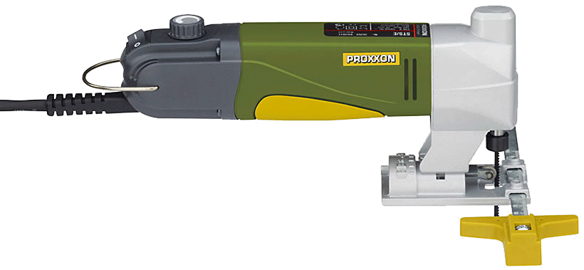 Ideal vor allem für Kurvenschnitte in Holz bis 12 mm, Platinen bis 5 mm und NE-Metall bis 3 mm.