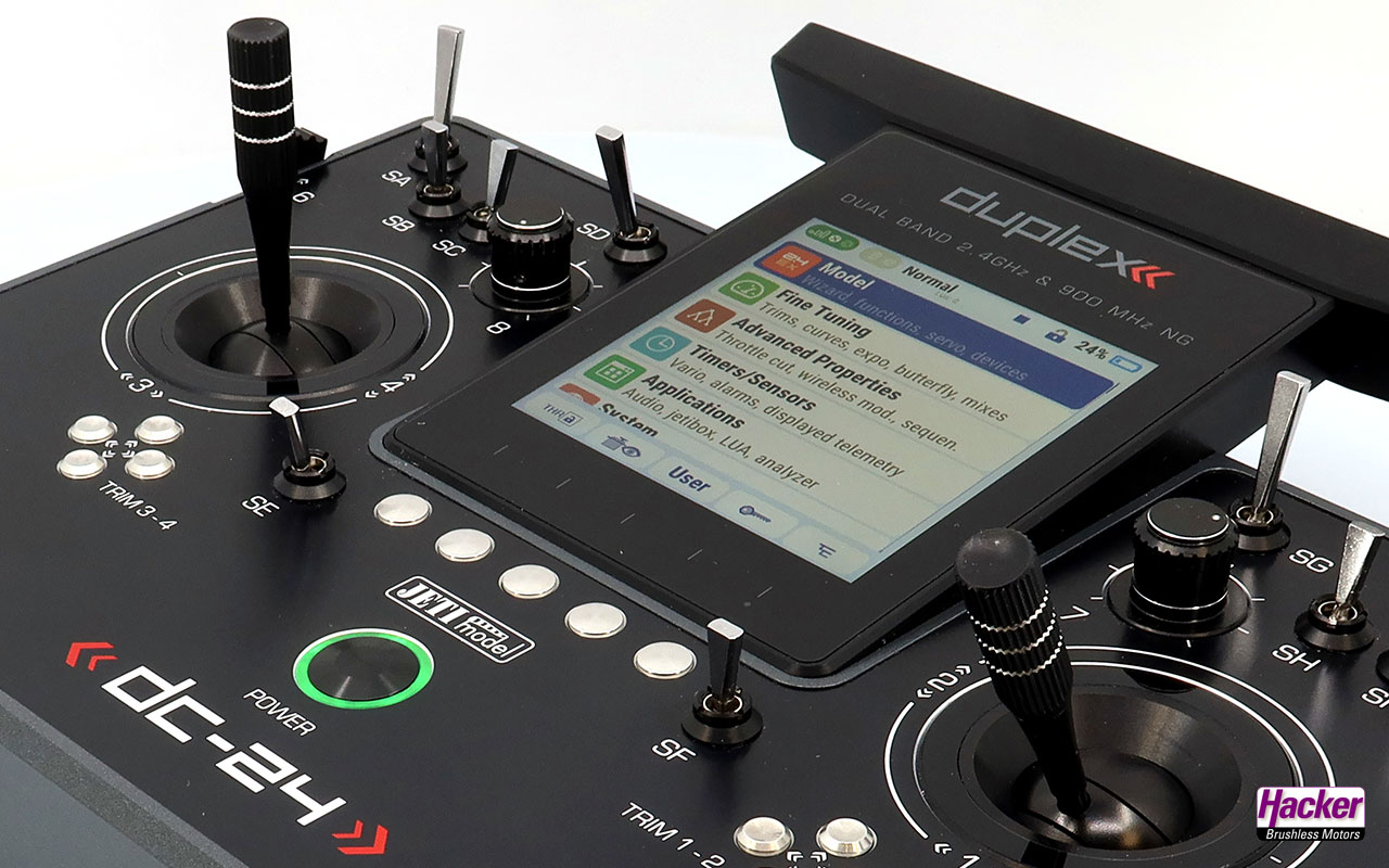 Der 900Mhz NG Empfänger ist speziell mit der DC/DS-24 zu betreiben. Es handelt sind dabei um ein unabhängiges, zweites Übertragungs-System in einem zweiten Frequenzbereich. Wird dieses System eingesetzt, kann das Modell auch bei einer Störung des 2,4Ghz Bandes (z. B. durch Richtfunk, bei Kopterflügen für Fernsehübertragungen usw…) weiter gesteuert werden. Das 900Mhz NG Backup-System wird nur aktiv, wenn dieser Fall eintritt. So dient es wesentlich der Erweiterung der Sicherheit in hochwertigen Modellen. Natürlich kann dieses Backup-System pro Modell separat aktiviert oder deaktiviert werden. Es wird immer zusammen mit dem 2,4Ghz Übertragungssystem eingesetzt, nicht einzeln.