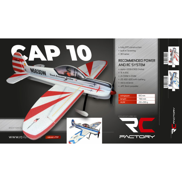Die Cap 10 wurde in Zusammenarbeit mit dem Team Piloten Jan Votava entwickelt, entsprechend seinen Anforderungen an die Flugleistung. Nun freuen wir uns, Ihnen die endgültige Version anbieten zu können, mit der sowohl wir als auch Jan Votava vollkommen zufrieden sind. Es ist uns wieder einmal gelungen, ein EPP-3D-Modell mit sehr guten Extremflugeigenschaften zu schaffen.