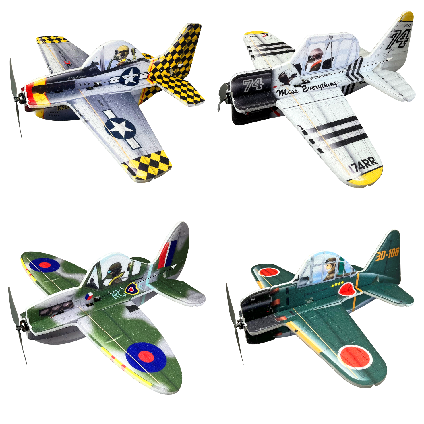 Erhältlich in vier legendären DesignsMustang, Texan, Spitfire und Zerodiese Flugzeuge feiern ikonische Warbirds des Zweiten Weltkriegs auf eine einzigartig lustige und zugängliche Weise. Sie sind die perfekte Ergänzung für jeden RC-Hangar.