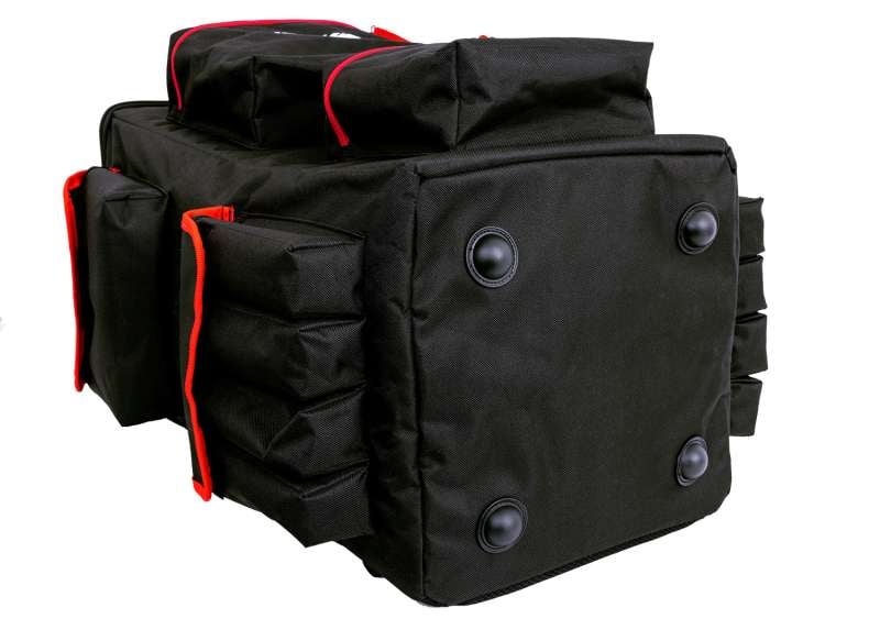 - Seitenfächer: Acht individuelle Fächer bieten Platz für große Power Cell 4s LiPo-Batterien, während die gepolsterten oberen Seitentaschen den EZ-Peak® Live Dual-Ladegerät aufnehmen können.