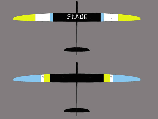 Elektro-Thermiksegler RCRCM Blade F5J X-Tail 3.3m Gelb/Blau GFK/CFK mit Schutztasche