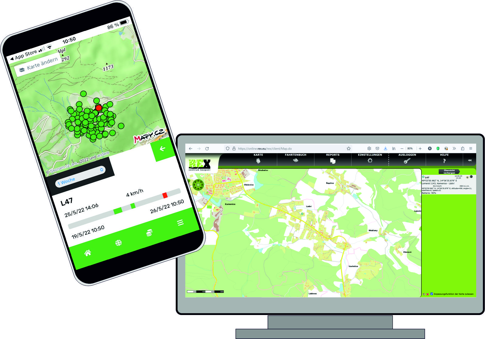 Die Positionsabfrage erfolgt komfortabel über eine kostenlose App oder den PC-Browser. Der erste Monat der Benutzung des Datenportals ist kostenlos, danach fallen laufende Gebühren an (*).
