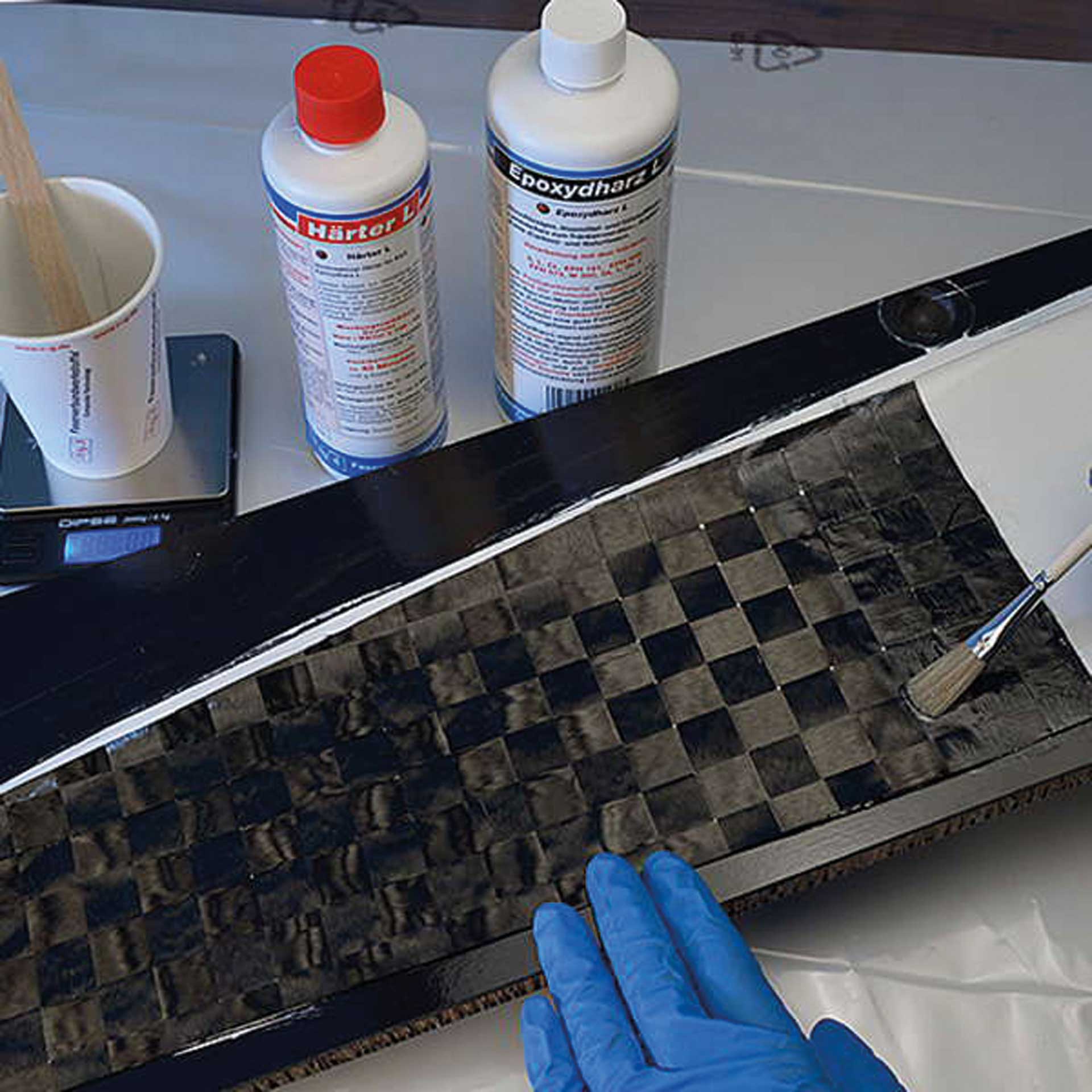 Das Epoxydharz L mit den Härter L ist das meistverwendete Laminier- und Klebeharz aus dem R&G-Lieferprogramm. Es weist ähnliche Festigkeiten auf, wie die in der Luftfahrt gebräuchlichen Laminiersysteme. Die Wärmeformbeständigkeit reicht von 60 °C (S, L) bis ca. 140 °C (VE 3261, nach Warmhärtung). Epoxydharz L ist dünnflüssig, lösemittel- und füllstofffrei und eignet sich hervorragend zum Tränken von Glas-, Aramid- und Kohlenstofffasern. Aufgrund der niedrigen Oberflächenspannung, der guten Haftung und des geringen Härtungsschwundes ist es für Verklebungen von Holz, Metall, Styropor etc. sehr gut geeignet. Ab sofort bietet der beliebte Alleskönner nochmals erheblich bessere Verarbeitungseigenschaften und Festigkeitswerte. Und das bei reiner Raumtemperaturhärtung!